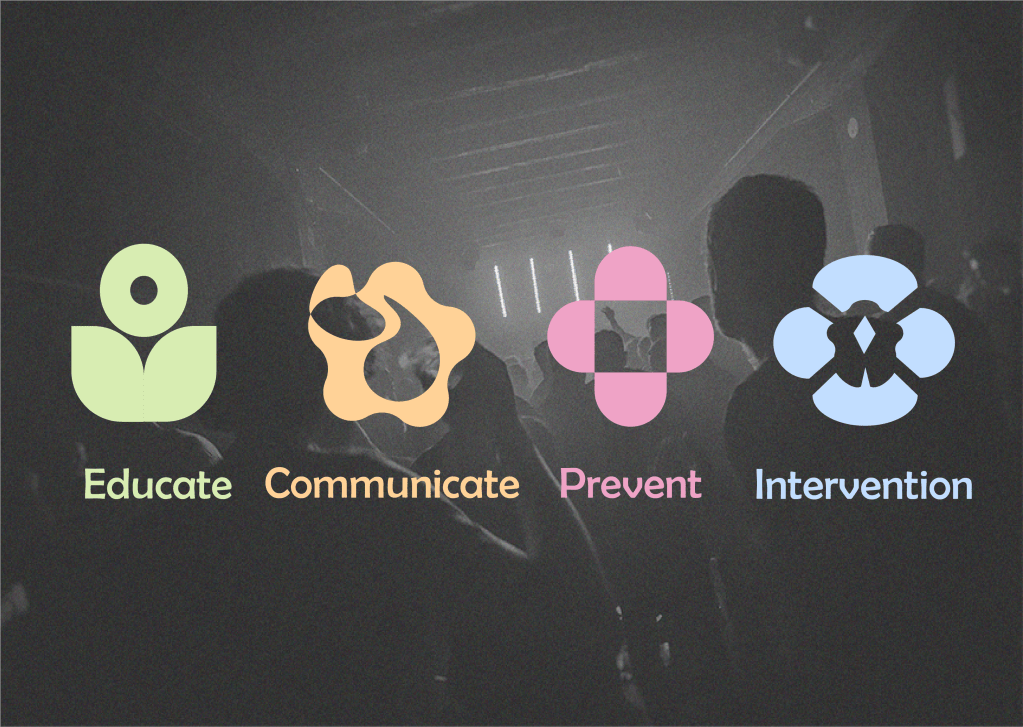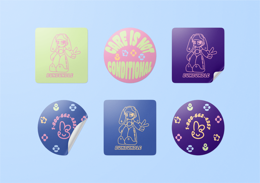 BunBundle is a Harm Reduction Design Campagin with a primary goal to reduce stigma and normalize the posession of harm reduction resources. People in large party spaces such as raves and festivals were our target audience. We grouped together our ideas and came up with a bundle of resources for people to keep with them in these spaces. It’s meant to be a fanny pack that includes: Naloxone, Drug Test Strips, Branding Cards which include best practices tidbits, Branded Stickers to help spread awarness, and Bracelets to help foster connection.